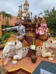 So today we set off before breakfast in the morning coolness. It was approximately a 40 minute taxi (Maxim) ride to the south-east on the road to Lamphun. Wat Sri Don Moon is nestled in the middle of nowhere special. The temple’s serene beauty, from its pristine white structures adorned with golden roofs to the intricate Lanna-style architecture, it whispers tales of devotion and artistry.