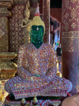 This morning’s plan was more culture — we headed out right after breakfast (to beat the heat) for Wat Phra Singh (1345 CE), Chiang Mai’s most revered temple. It was an easy taxi ride into the center of Old Town.