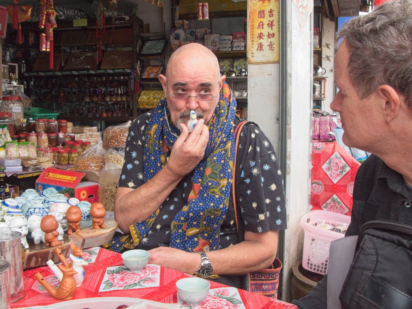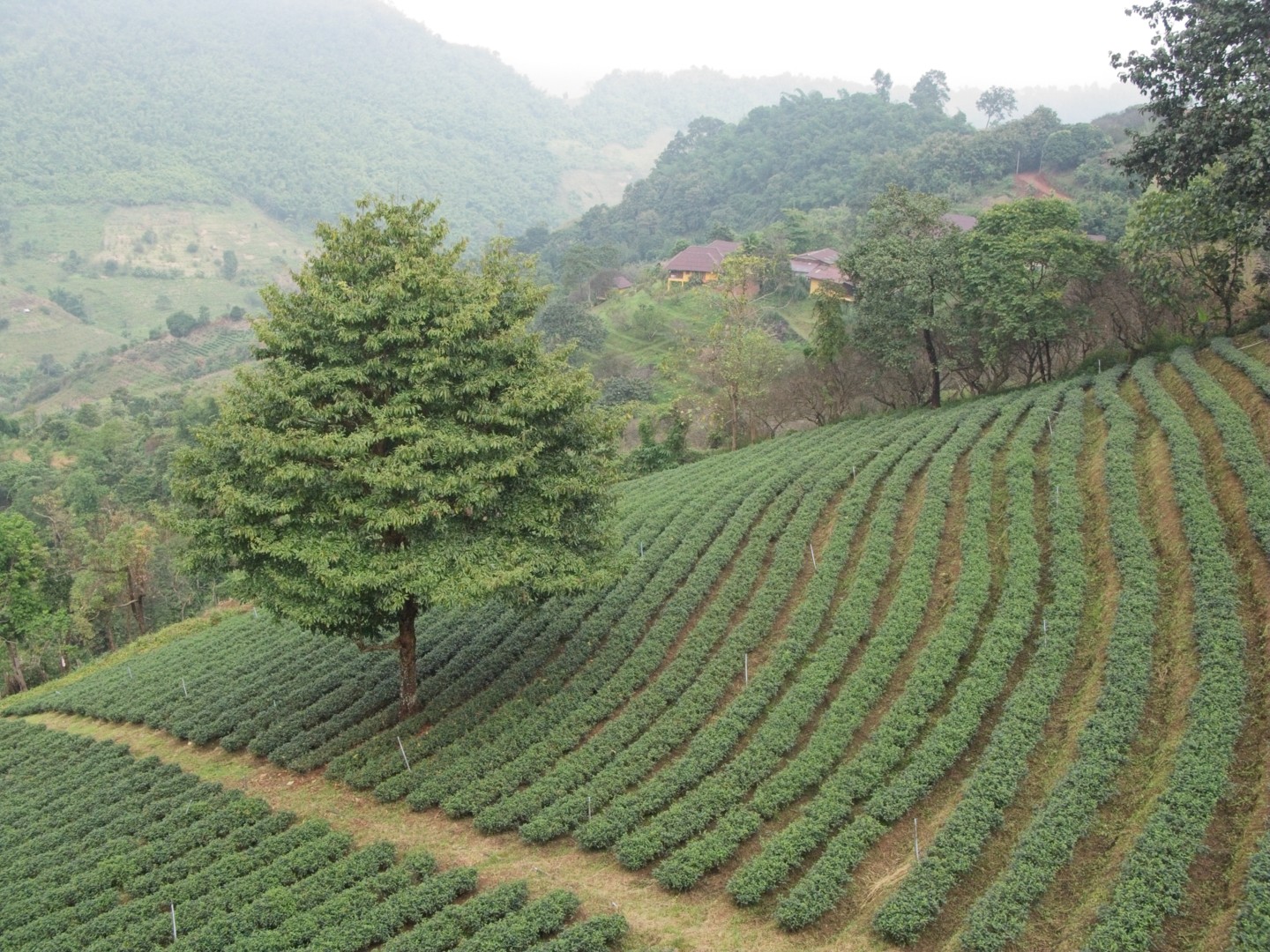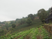 Mae Salong was settled by remnants of the former Nationalist (Kuomintang) Chinese Army 93rd Division who moved from Burma to Thai territory in 1961, after the Communist Party under Mao Zedong consolidated its hold on China. Originally a military base biding its time for an attack back, funding its arms purchases with opium production — notorious warlord Khun Sa lived a few kilometers away in Ban Hin Taek — in the 1970s the Thai government struck a deal with the renegades: the battle-hardened KMT would help them fight Thailand’s own Communist insurgents, and would be granted citizenship in exchange. As part of the integration process, opium production was successfully substituted with mountain produce like mushrooms and above all Oolong tea, which is now Mae Salong’s main product.