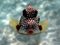 The beauty of snorkelling here is that you just wade/swim about 100 meters right off the beach to the edge of the reef where it drops straigh down a kilometer. Yes we saw all of the fish pictured and millions of other reef fish.