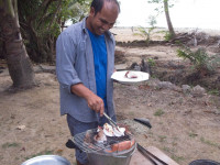 Mr Law came over with a bucket of squid and a grill. The rest was a feast.