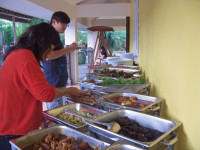 Bunaken Beach Resort was a pleasant surprise. Last time we were here the accommodation choices were very simple. What we found was still simple, but clean and airy. It was still stinkin’ hot here 1.6 degrees north of the equator. AND the food… we were nervous about the food as the accommodation includes full board. No choices just sit down and see what arrives. Last time, the first day was wonderful… fresh fish and veg and rice. But we soon realized that that was what it would be for EVERY meal. Lucky for us, Bunaken Beach Resort’s kitchen never repeated a dish for the entire 7 nights we were there. Very good food!