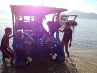 ✈️ Fly Bali to Makassar… one night at Hotel Pacific then on to Manado the next morning. The driver was waiting for us at the airport and whisked us away to the waiting boat to take us out to Bunaken Beach Resort. Manado is still a hole. Glad we chose the hold your hand transfer option.