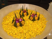 Already It’s only a week till Christmas, time just seems to evaporate. The main event to date was Loy Krathong on November 6th. The name could be translated “Floating Crown” or “Floating Decoration”, and comes from the tradition of making buoyant decorations which are then floated on a river. The candle venerates the Buddha with light, while the krathong’s floating symbolizes letting go of all one’s hatred, anger, and defilements. People sometime cut their fingernails or hair and placed the clippings on the krathong as a symbol of letting go of negative thoughts.