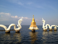In the first week of December it was required that we do a border run to activate our 2nd 60 day Thai visa. From Chiang Mai the closest border is at Mae Sai on the border with Myanmar (Burma). We rented a Toyota Vios (sorta like a 4 door Yaris) and headed off driving on the wrong side of the road. 😎 Hit the road at 7:30am, got to Mae Sai about 11:30am and luckily found a street-side parking spot only 300m from the border bridge. Getting stamped out of Thailand, stamped in and then out of Myanmar, picking up a couple of Cuervos Gold at duty free and stamped back into Thailand only took 45 minutes. Back on the road for the 3 hour run down to Phayou. We came through Phayou last year and thought it would be a great little stop over. Our B&B was right on the lakeside walkway… a repurposed old house that a great 3rd floor double room with a huge terrace. A real nice place to chill.