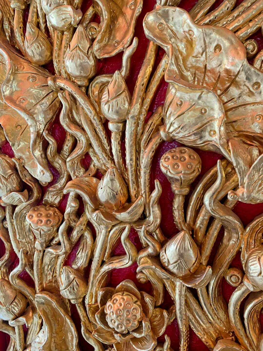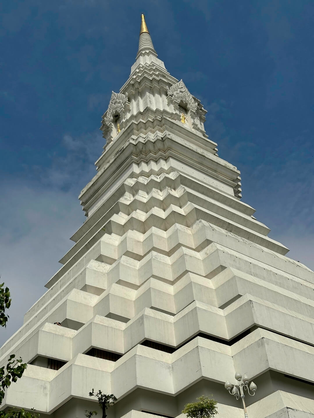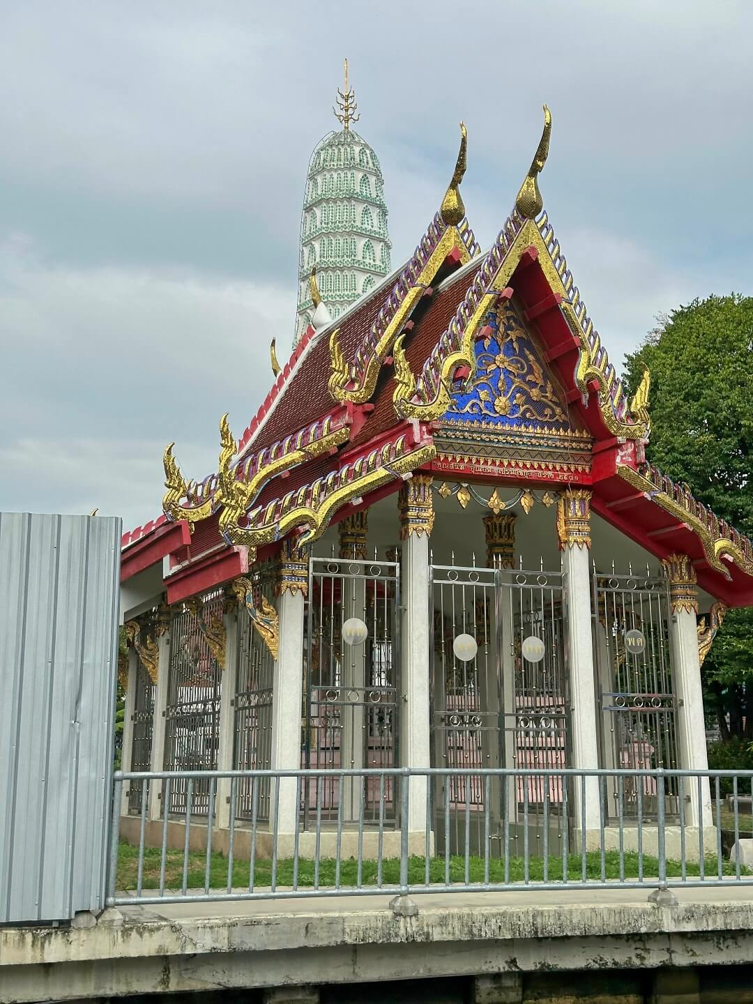 Unfortunately, the Buddha was shrouded in scaffolding getting some last minute remediation. But we did get to enjoy the stupa named “Maharatchamongkhon”. The 80 meters (260 ft) high stupa has a twelve-sided polygon shape with five floors in it, including another 8-meter glass stupa. The stupa was finished in 2012, costing a total of 500 million baht. The dome ceiling at the top floor is spectacular.