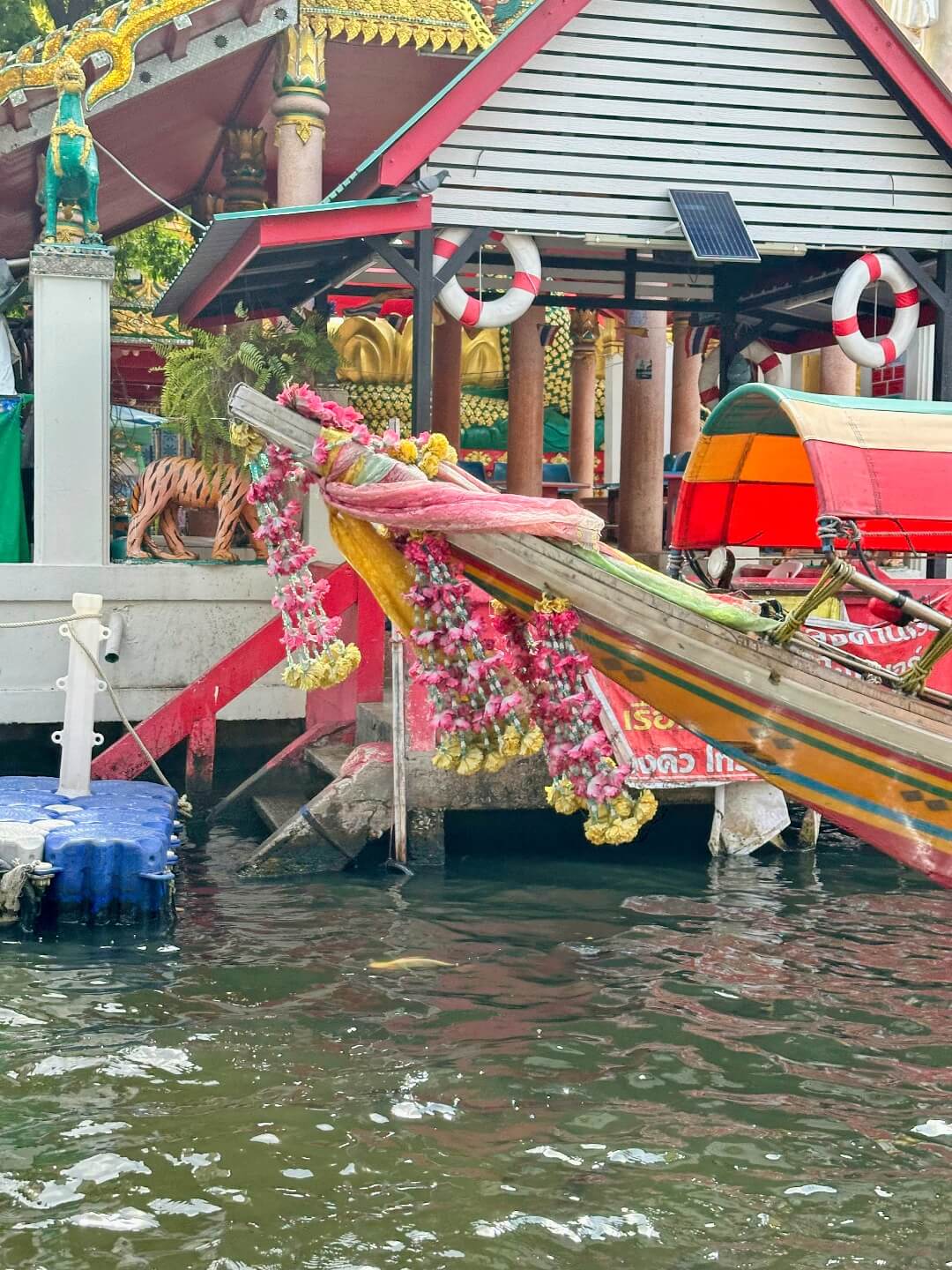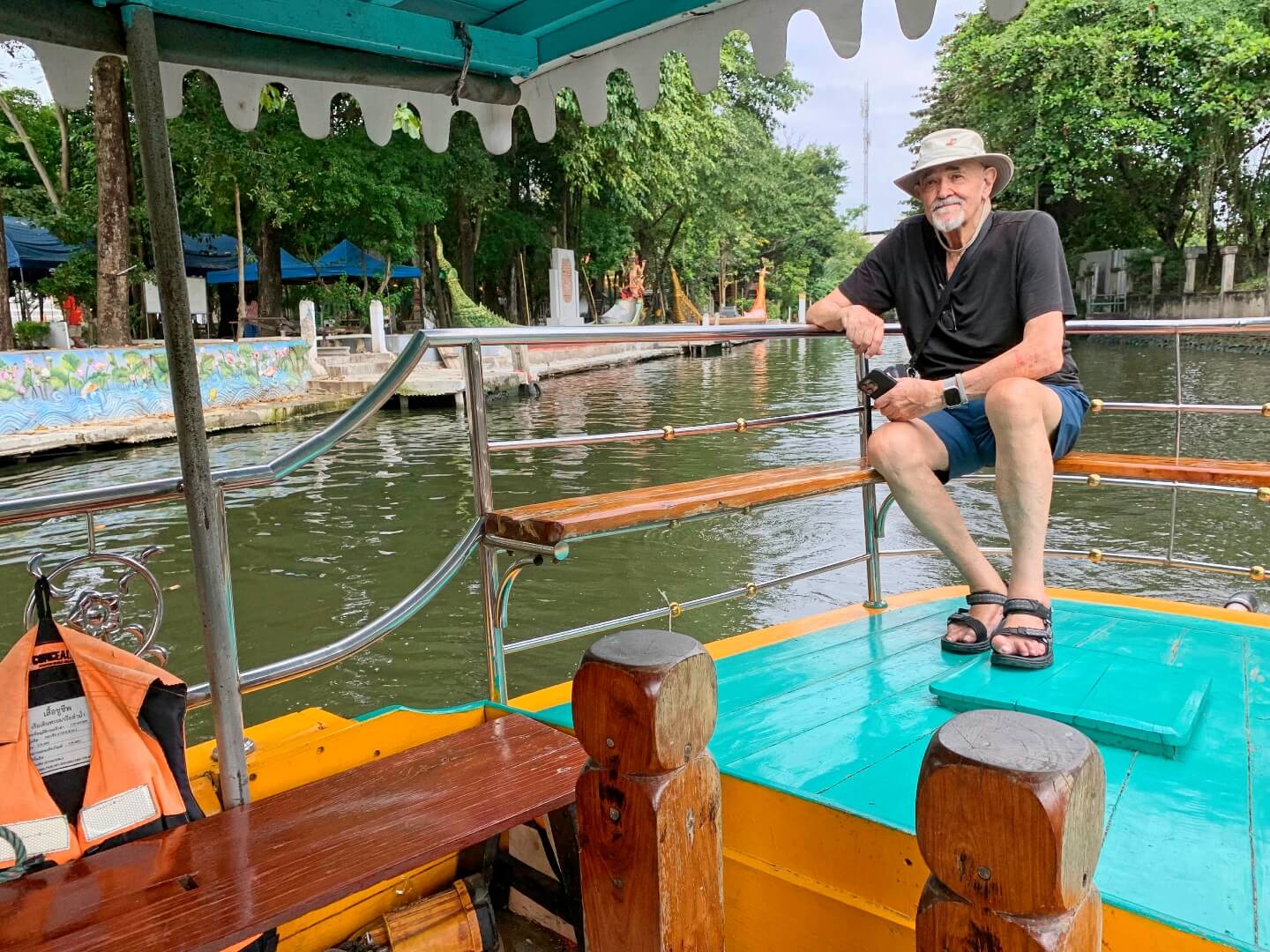 A short 45 minutes to Bangkok, sky-train to downtown and then Grab (Uber in Asia) to our riverside hotel. First order of business is to get SIM cards for Thailand. Can’t order Grab till we have a phone number. 7-11 has a great deal, unlimited data and Thai phone calls for 30 days – THB 350 (CA$14). As usual there is a 7-11 everywhere, so short walk from our station. As we sat in a small plaza, SIM’ing up our phones, a security person approached to say we could not sit there and we should move inside the building. As I questioned the logic of that while in the middle of phone mechanics, out of the corner of my eye I caught movement. I turned to face 3 meters away, a 2m long snake was rapidly trying to gain purchase on the slippery granite. We quickly relocated. Have never encountered a snake in downtown Bangkok in 45 years. 😱
