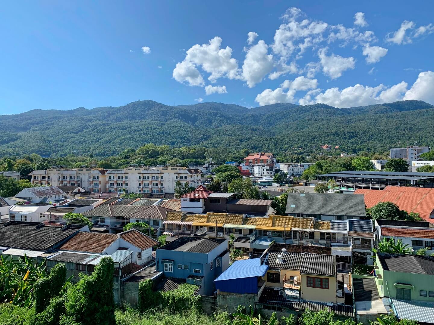 Real life did not disappoint. Our research had lead us to picking the 7th floor Deluxe Corner Suite. Correct choice. Windows on 3 sides, morning view at the kitchen table is sunrise over a 27 acre forested Jesuit Retreat, the south side overlooks the pool and west side is the balcony off the bed-sitting room looks at Doi Suthep, the 1,676 metres (5,499 ft) mountain that house the famous temple at the summit . Evening sunsets are sweet. And… it’s the first thing you see in the morning from bed.