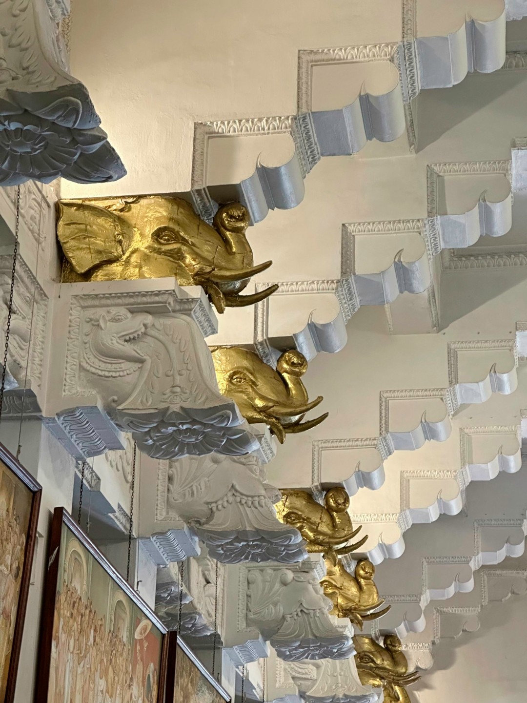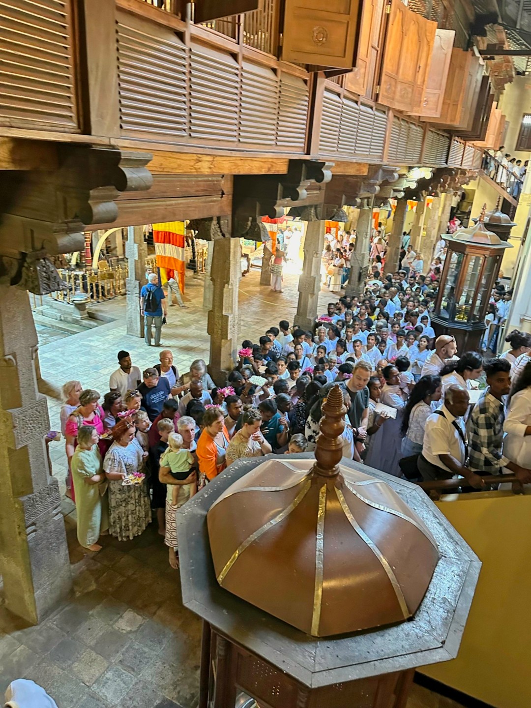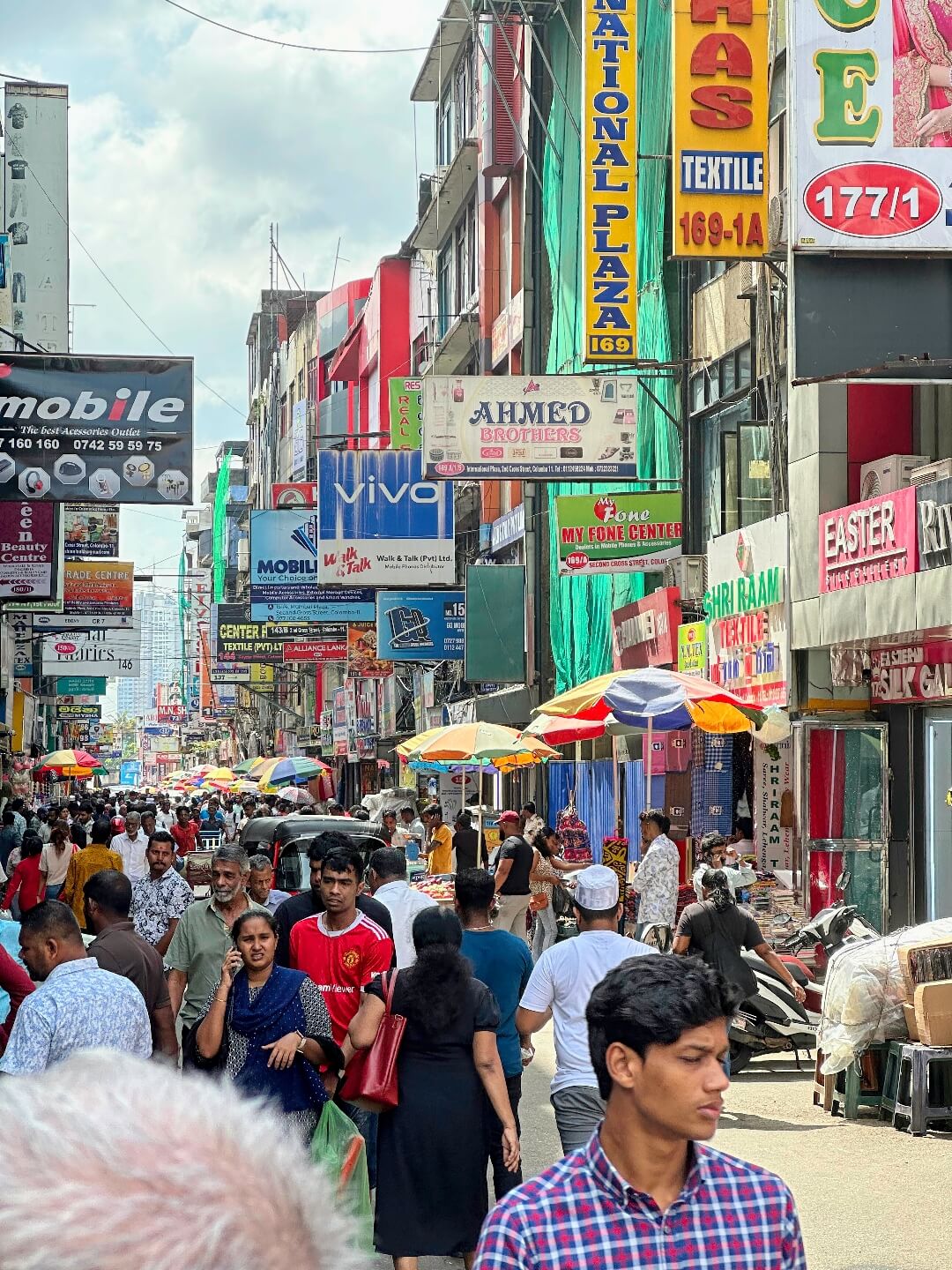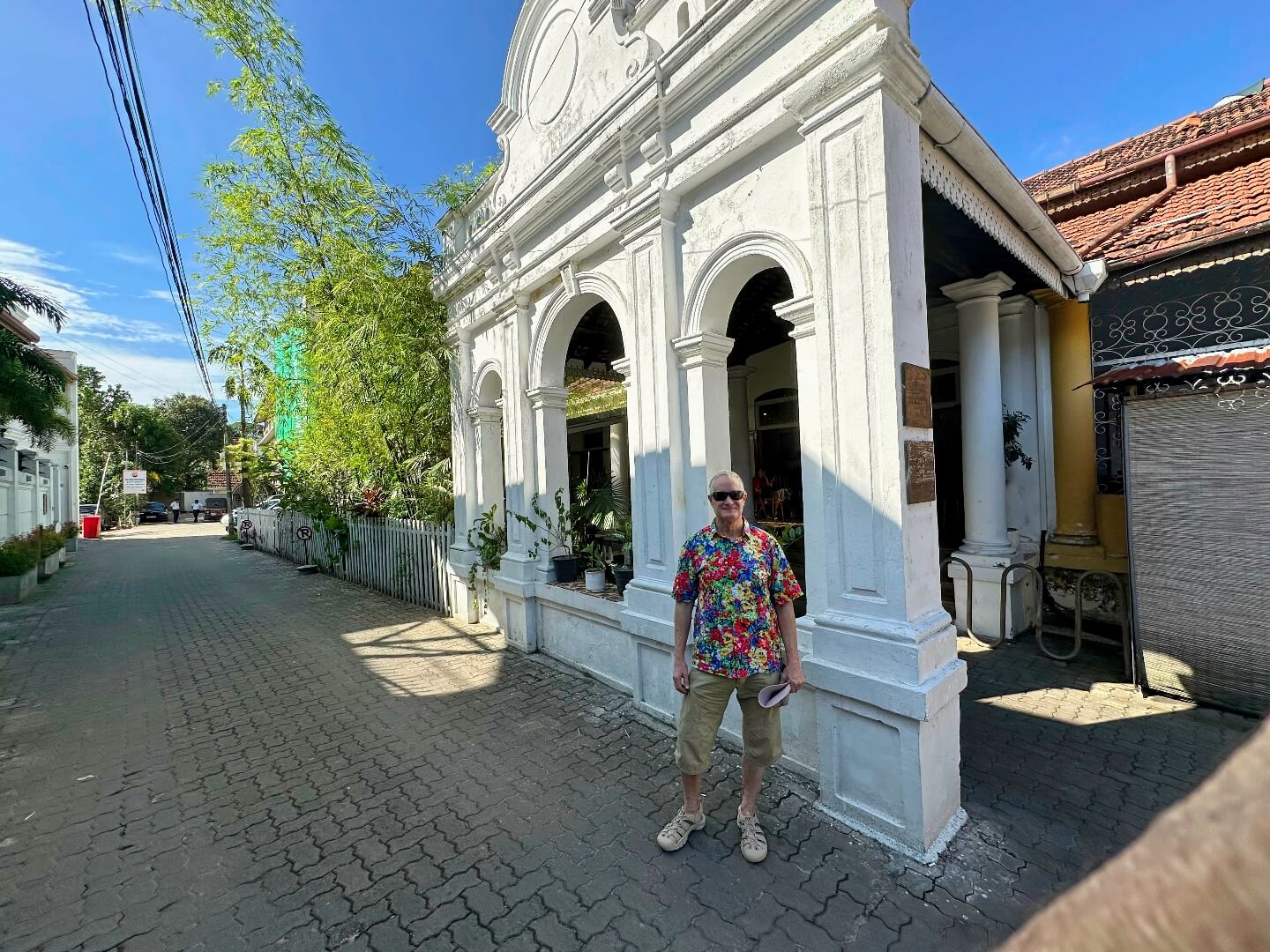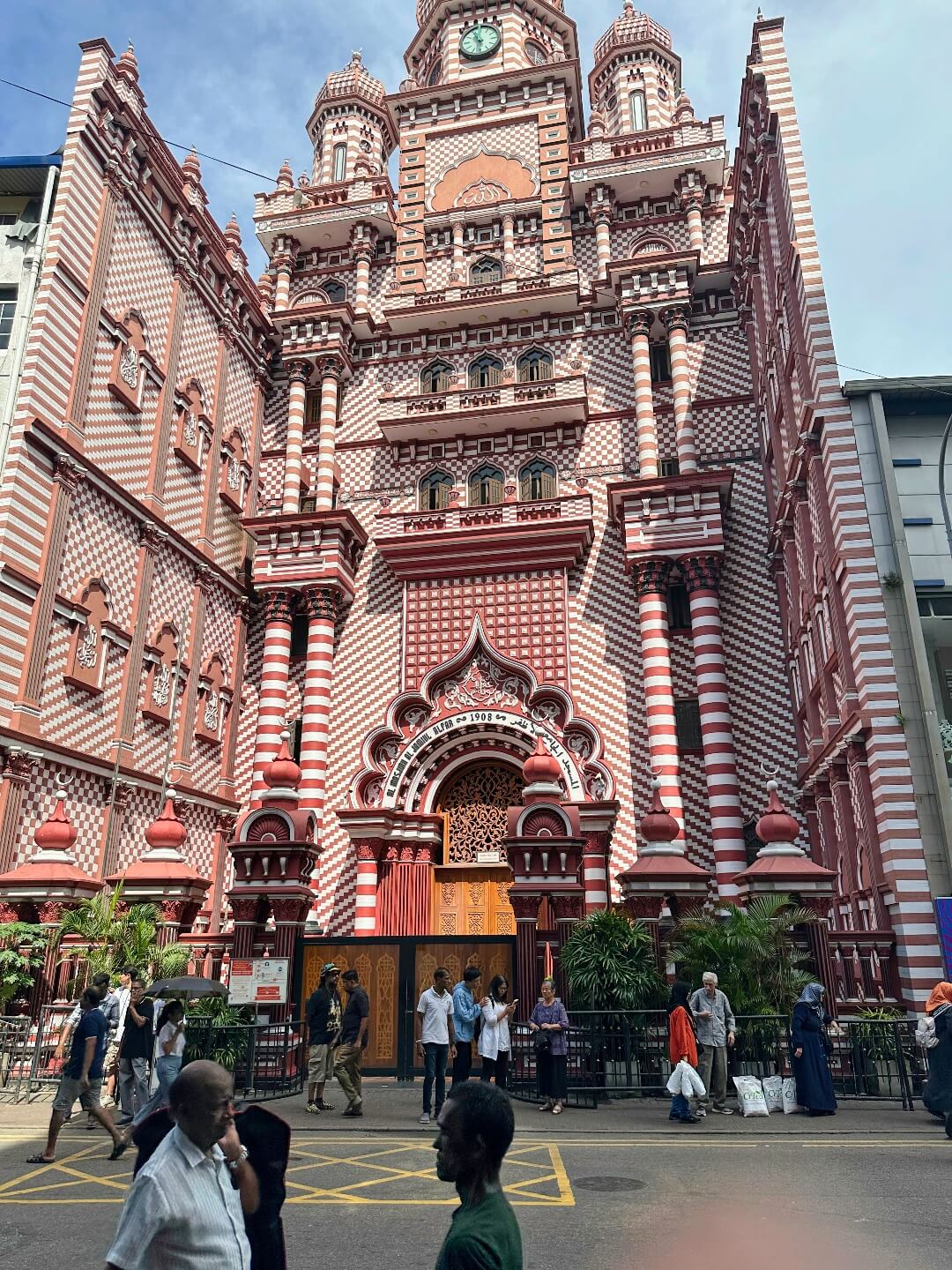 Glenn and I (Bob) took a tuk-tuk into the city centre to check out the famous Pettah Market. As promised, it was bustling with life—a chaotic sprawl of retail and wholesale vendors offering everything from food, electronics, and hardware to bags, clothes, jewelry, and cookware. A goldmine for bargain hunters, and absolutely worth the visit. This is also where you’ll find the Jami Ul-Alfar Mosque, built in 1908. The red-and-white checkerboard façade with its candy-striped minarets is striking. The domes were designed to resemble pomegranates rather than traditional onion-shaped ones. It’s said that sailors approaching Ceylon used it as a landmark, and with its bold design, it’s easy to see why.