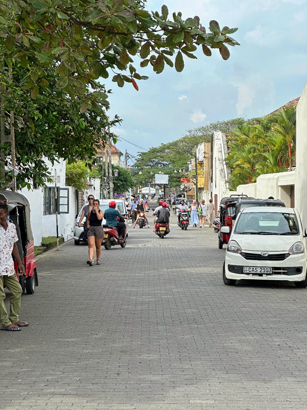 One thing became clear very quickly: Sri Lanka’s roads—especially outside the cities—aren’t made for walking. Sidewalks are rare, and the narrow highways are a never ending stream of screaming Mad Max buses, tuk-tuks, motorbikes, trucks, and cars all jostling for space in a fast-moving chaos. Who ever has the loudest horn, claims right of way! Watching tourists strolling along the edge, backs to traffic and no shoulder in sight, was terrifyingly stupid. 😱 Peaceful strolls not happening.