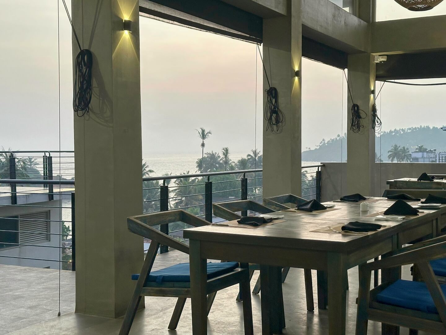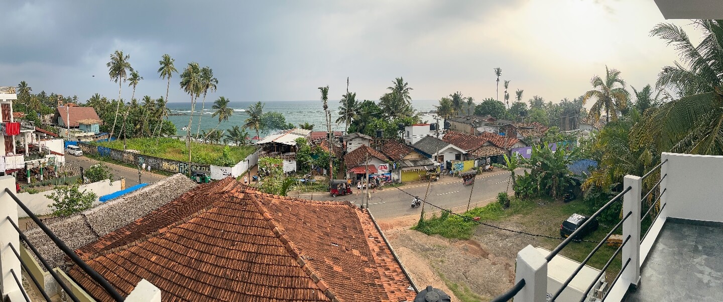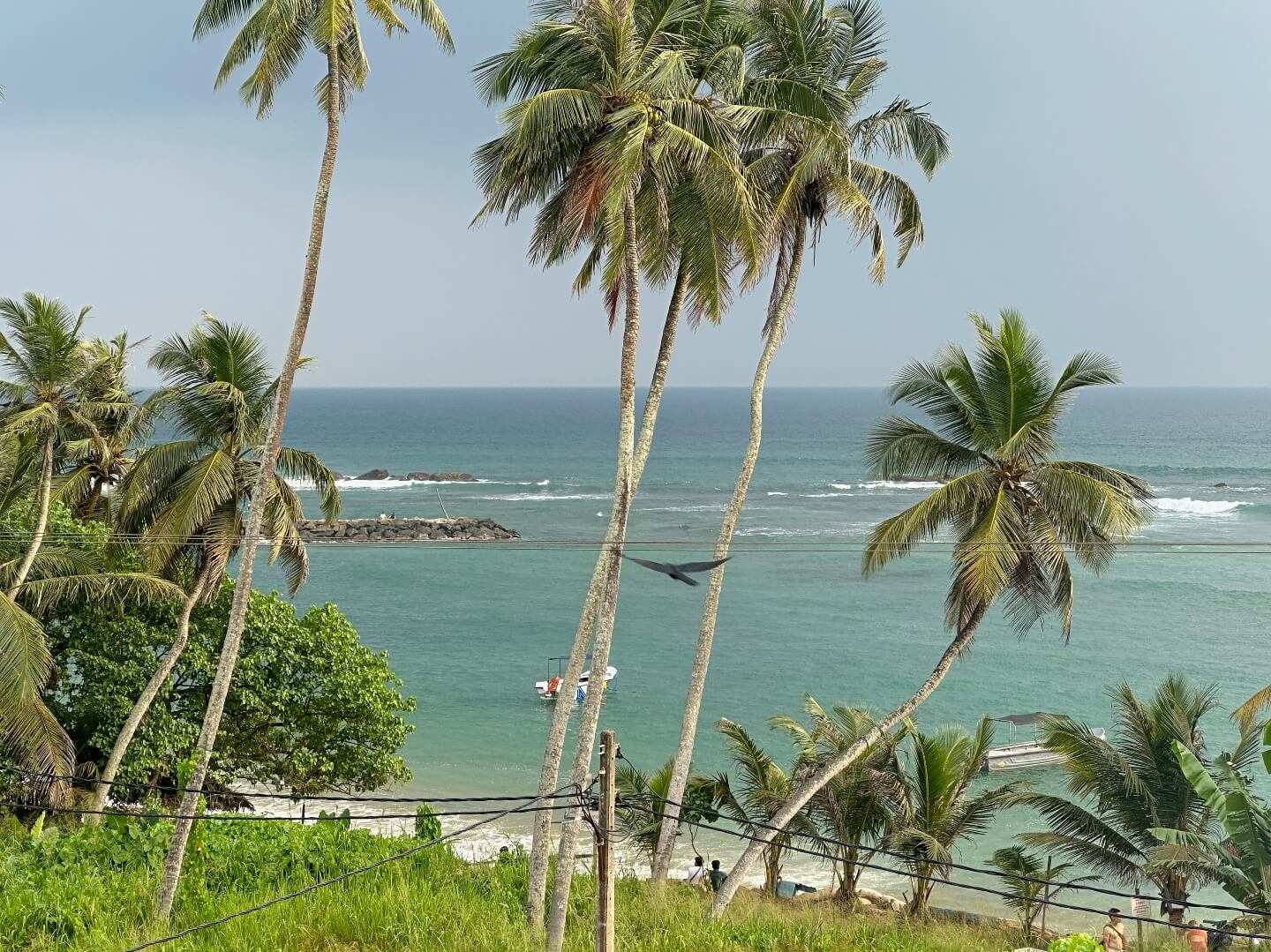 We booked a PickMe 🚕 (Sri Lanka’s version of Uber) for the 40 km drive that meandered along the coastal Galle–Matara highway to our hotel, Sailors Mirissa. Tucked just steps off the highway, it offered an excellent south-facing view and was only steps from a string of beachfront restaurants.