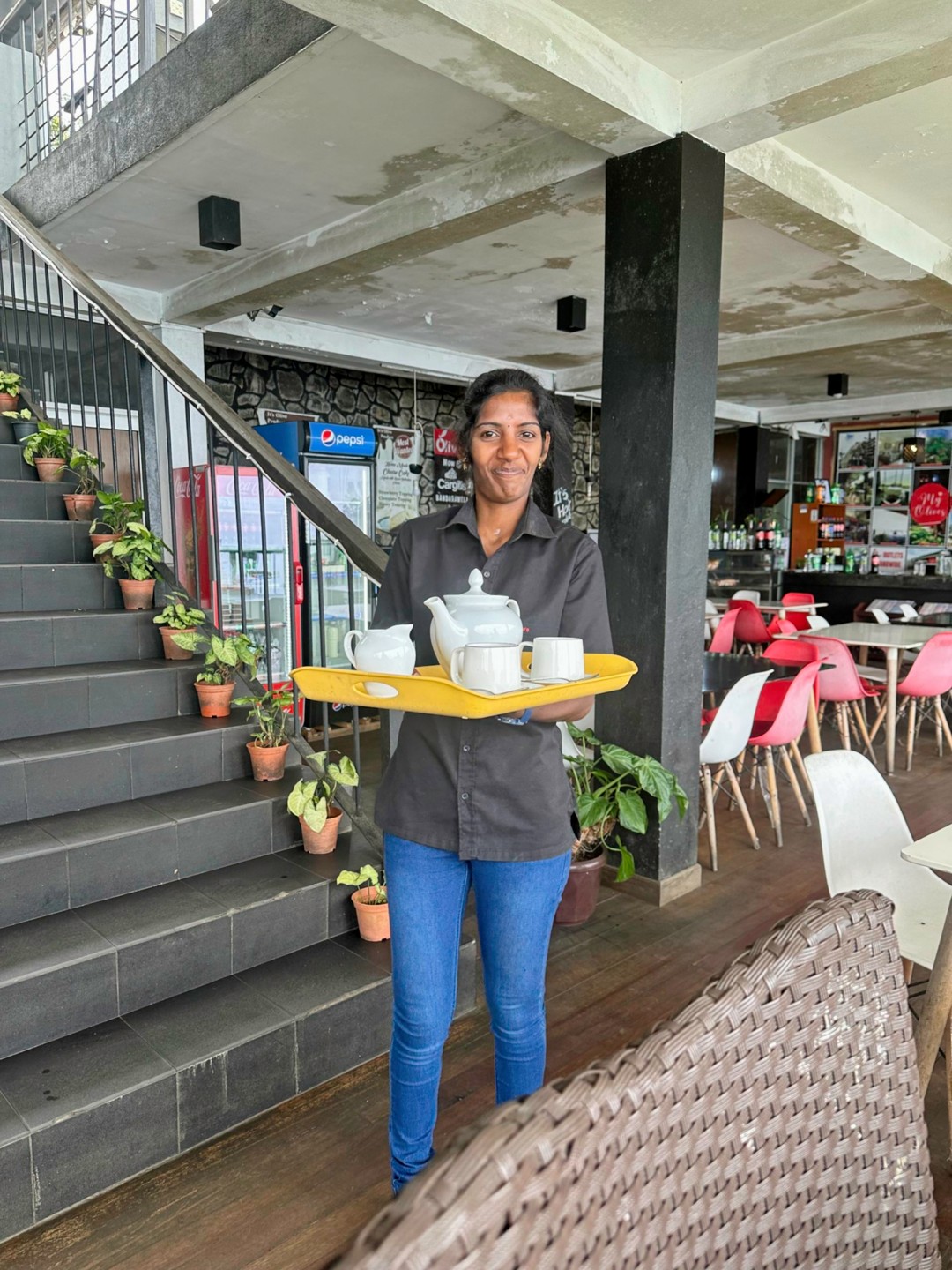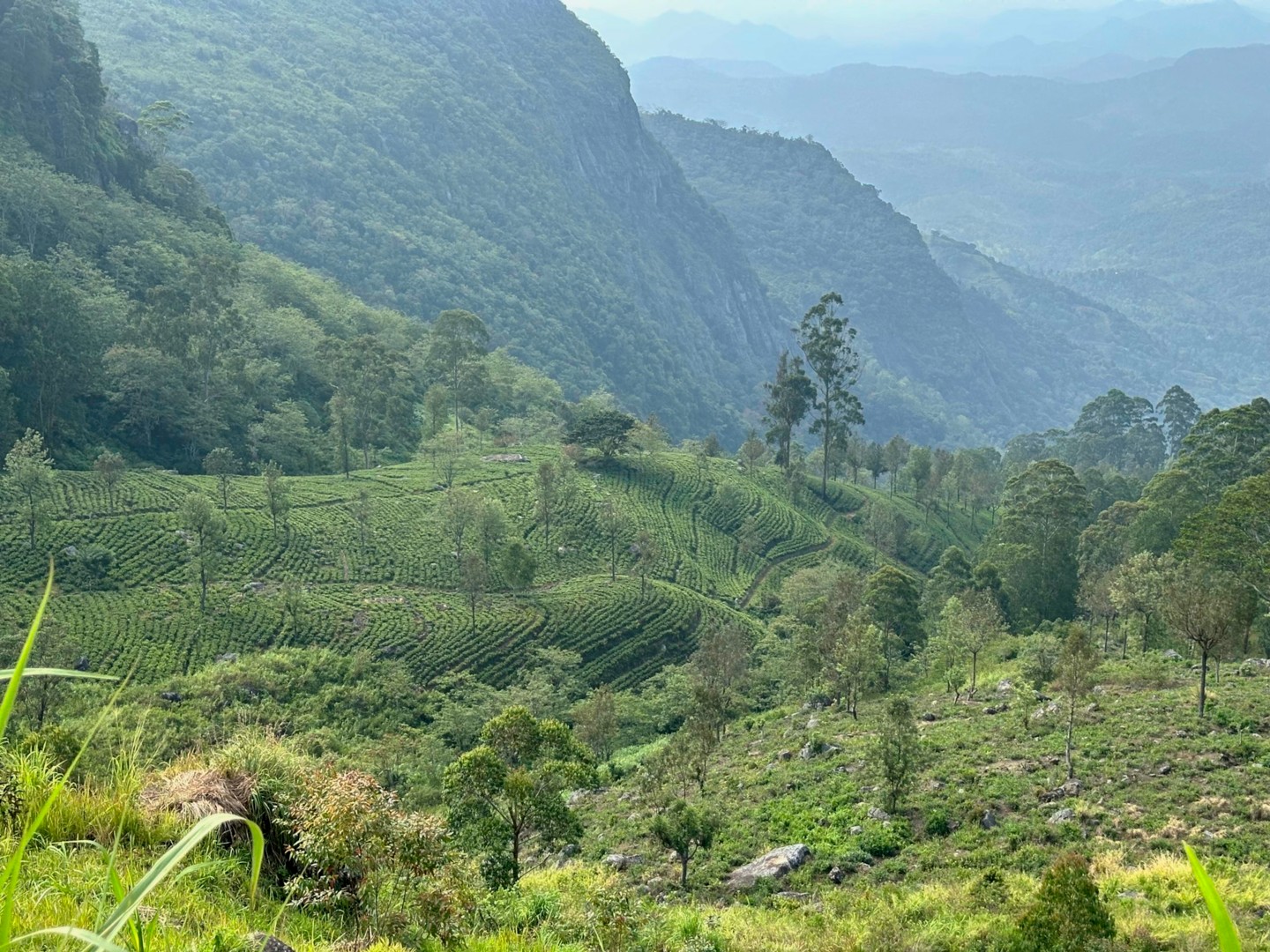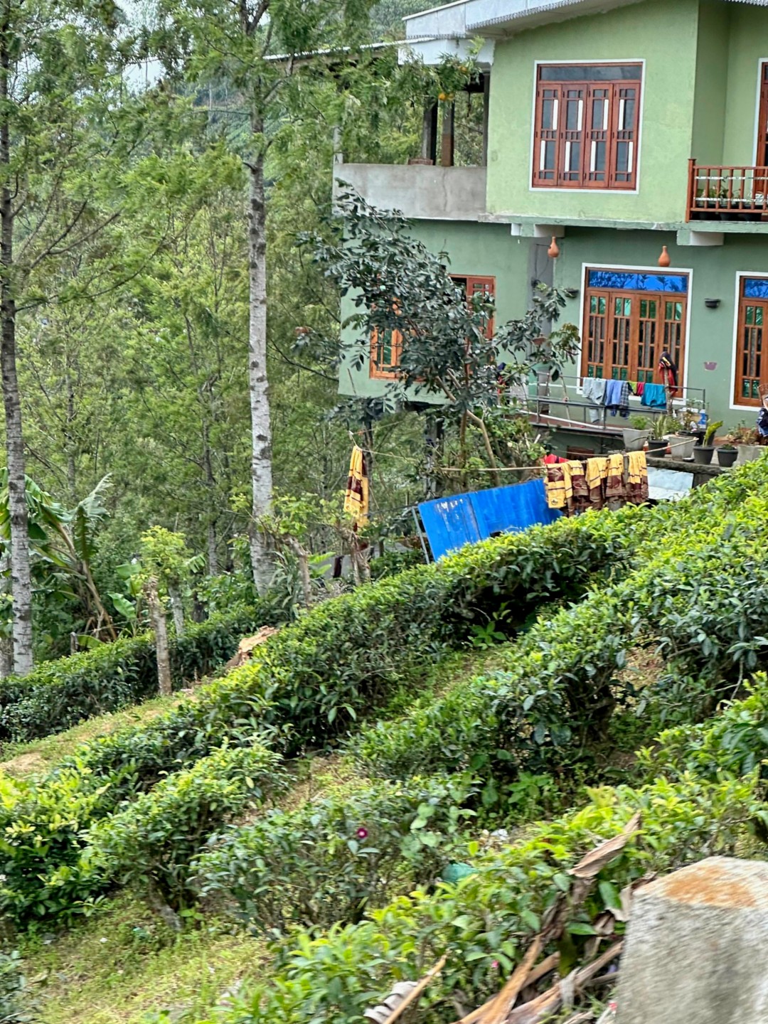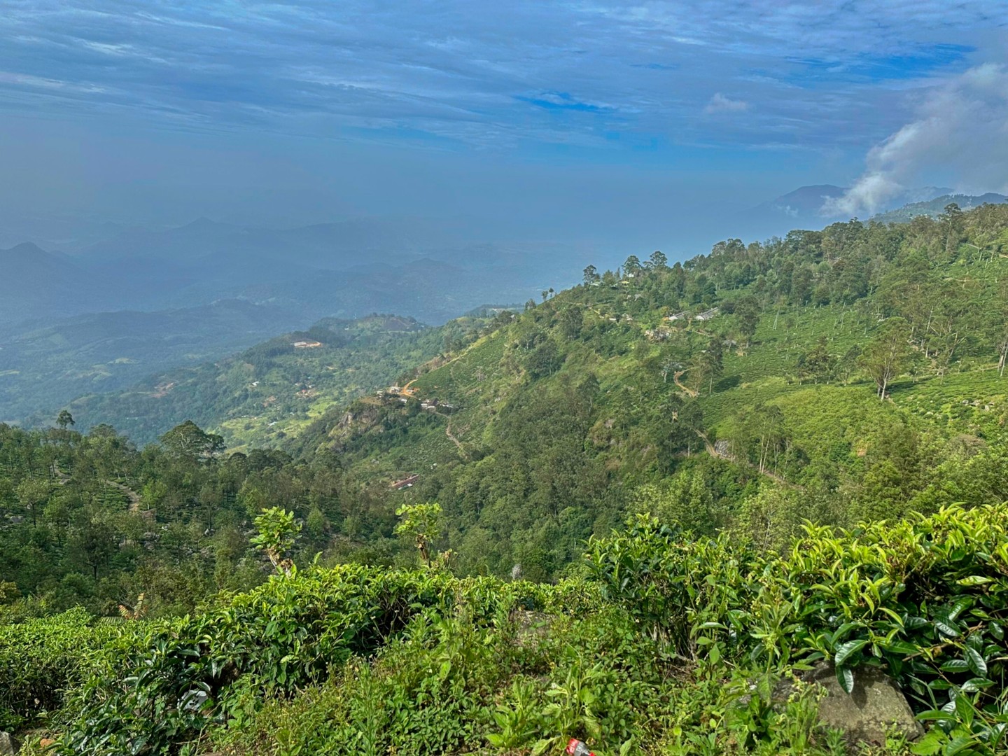 We decided to splurge a bit and booked the best hotel in town—Vantage Hills Haputale. With just nine rooms, each one offers the same breathtaking view over a vast, southwest-facing slope blanketed in tea plantations that seem to stretch endlessly. The top floor doubles as a restaurant and viewing deck, where we enjoyed a delicious included breakfast—Sri Lankan or English, our choice each morning.