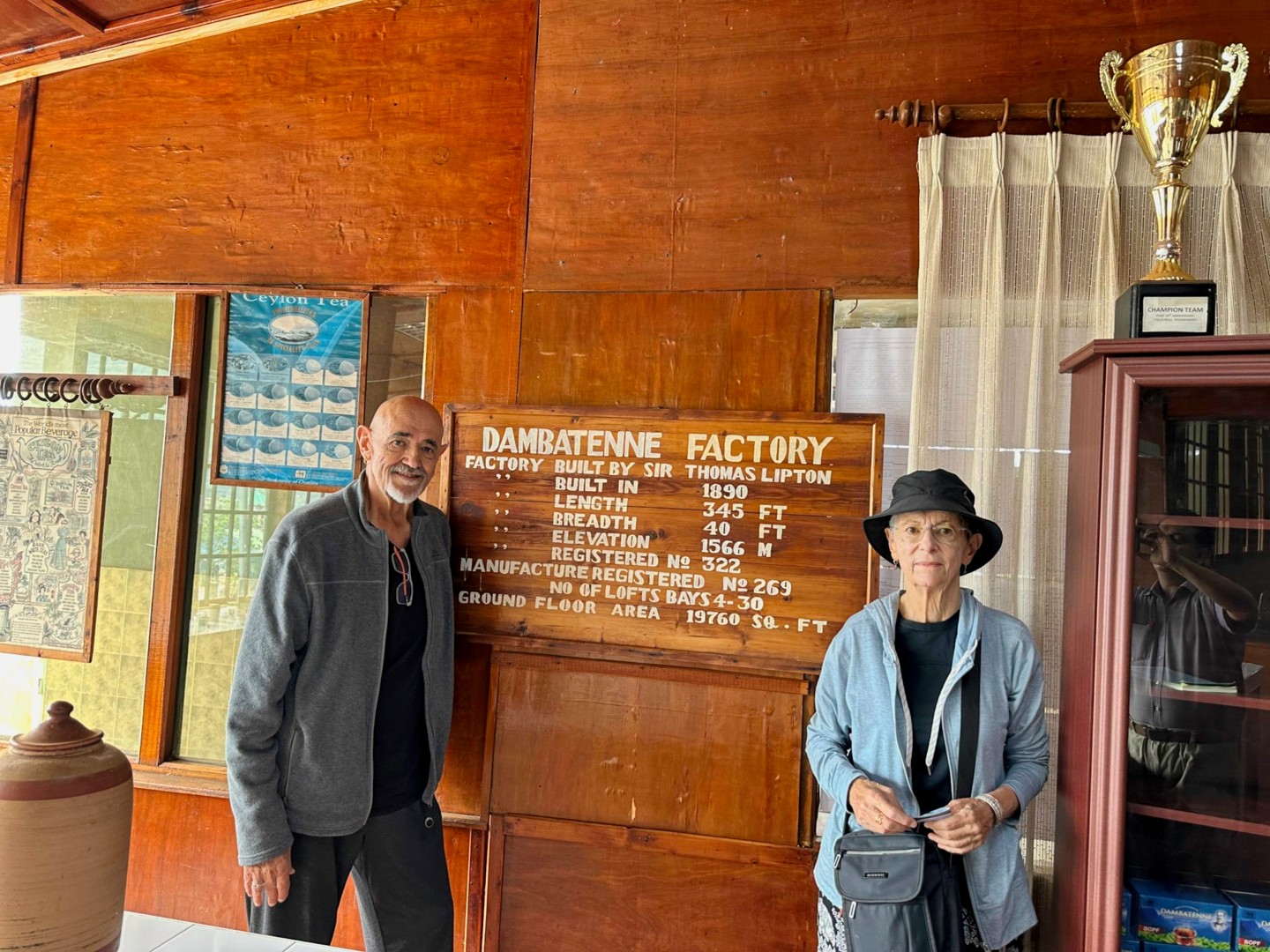 Glenn had tweaked his back and decided to rest for the day, so Joann and I hired a tuk-tuk to take us on a scenic ride along a winding, single-lane cliffside road. For 15 km, we passed through seemingly endless terraced tea fields en route to the Dambatenne Tea Factory—the original Lipton tea factory. Established in 1890 by Sir Thomas Lipton, this is where he pioneered his renowned “Direct from Tea Garden to Teapot” supply chain. The factory still operates today, using some of its original 19th-century machinery, and offers fascinating tours where visitors can witness the full tea-making process: fermentation, rolling, drying, sieving, grading—and, of course, tasting. From leaf to cup.